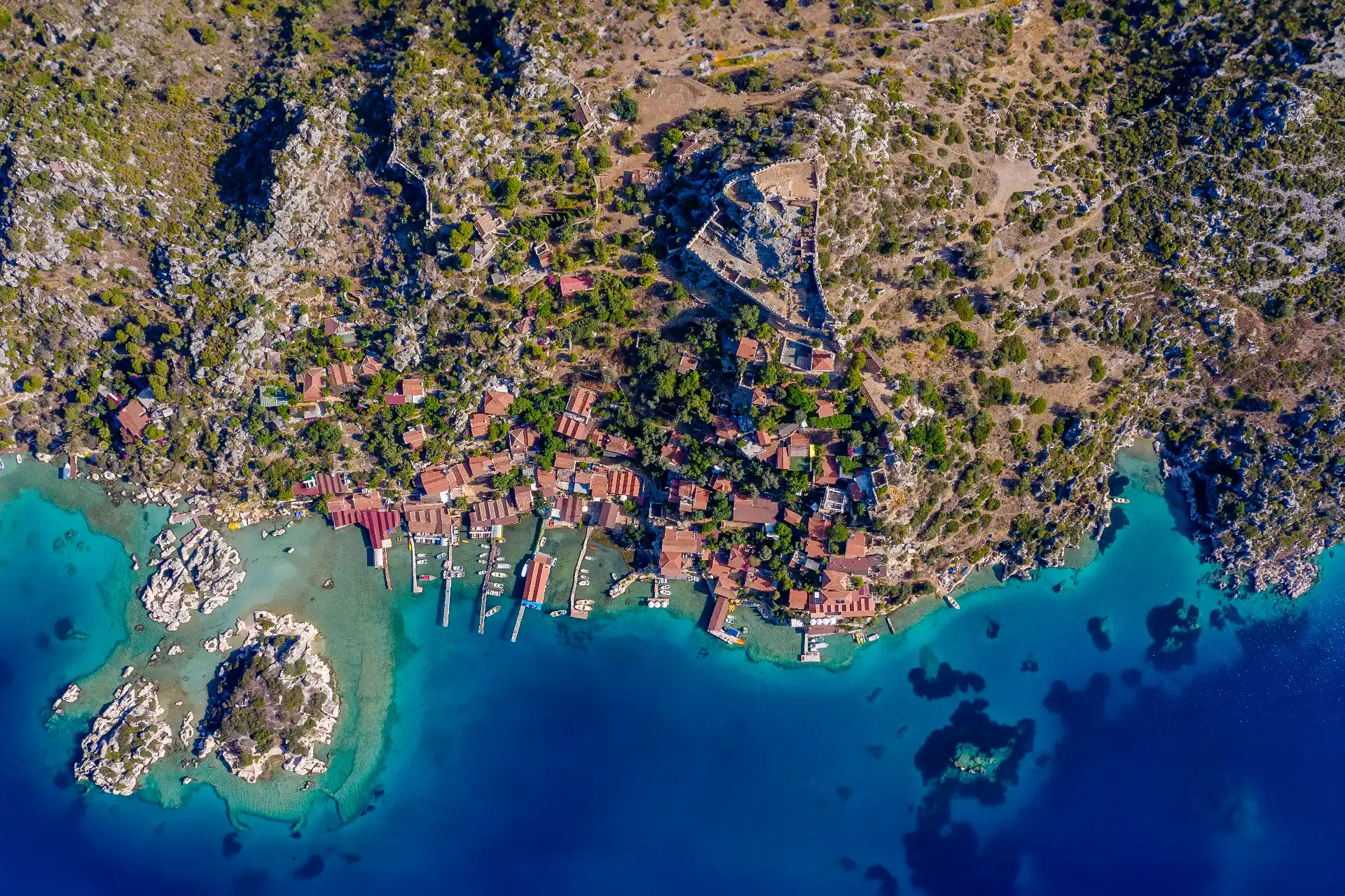 Kekova, (Likya dilinde: Dolichiste) Antalya ilinin Demre ilçesi yakınlarında Kaleköy ve Üçağız açıklarındaki küçük, kayalık bir adadır. Kaynaklara çoğu kez Kakava diye geçmiştir. 4.5 km²'lik yüzölçümü olmakla birlikte bu adada kimse yaşamamaktadır. Üzerinde pansiyonlar ve kafeler bulunan ve teknelerle ulaşım sağlanan kısım adanın karşı kıyısında, anakaraya bağlı Kaleköy' dür. İtalyan işgalinden sonra adanın hangi ülkeye ait olacağı konusunda Türkiye ve İtalya arasında bir süre uzlaşılamamış, daha sonra ada 1932 yılındaki anlaşma ile Türkiye'ye bırakılmıştır. Kuzey tarafında ikinci yüzyılda depremlerle yok olan antik Dolkisthe kentinden kalma batıklara yer yer rastlanır. Kekova, Bizans döneminde yeniden kurulup gelişmiş fakat gelişmesi Arap istilaları yüzünden devam edememiştir. Kekova ve çevresi 18 Haziran 1990'da Çevre ve Orman Bakanlığı tarafından sit alanı ilan edilmiştir. Tüm yüzüş ve dalışların hükûmet tarafından özel izin alınarak yapılması kararlaştırılmışsa da sonraki yıllarda bu yasak, tarihî batık olanlar haricindeki yerler için kaldırılmıştır. Kuzey tarafında, 2. yüzyılda bir deprem tarafından yıkılan antik bir kent olan Dolchiste/Dolikisthe'nin kısmen batık kalıntıları vardır. Bizans İmparatorluğu döneminde yeniden inşa edilen ve hala gelişen şehir, Arap akınları nedeniyle sonunda terk edildi. Tersane (tersanenin körfezi, antik Xera kenti ve tersane Bizans kilisesinin kalıntıları ile birlikte) adanın kuzeybatısındadır. Kekova bölgesi 260 km2 (100 sq mi)'dır ve Kekova adasını, Kaleköy ve Üçağız köylerini ve Simena, Aperlae, Dolchiste ve Teimioussa adlı dört antik kenti kapsar. Kaleköy (yerel olarak sadece Kale) (antik Simena) Türkiye kıyısında bir Likya bölgesidir. Aperlae'nin kısmen batık kalıntıları[3] ve bir kalesi olan küçük bir köydür. Köye ulaşım sadece deniz yoluyla mümkündür. Üçağız (eski adı Teimioussa), Kaleköy'e 1 km uzaklıkta, aynı adı taşıyan küçük bir koyun kuzeyinde, doğusunda Teimiussa harabeleri olan bir köy’dür. Üçağız' ismi, açık denize açılan üç çıkışa atıfta bulunarak üç ağız anlamına gelir.